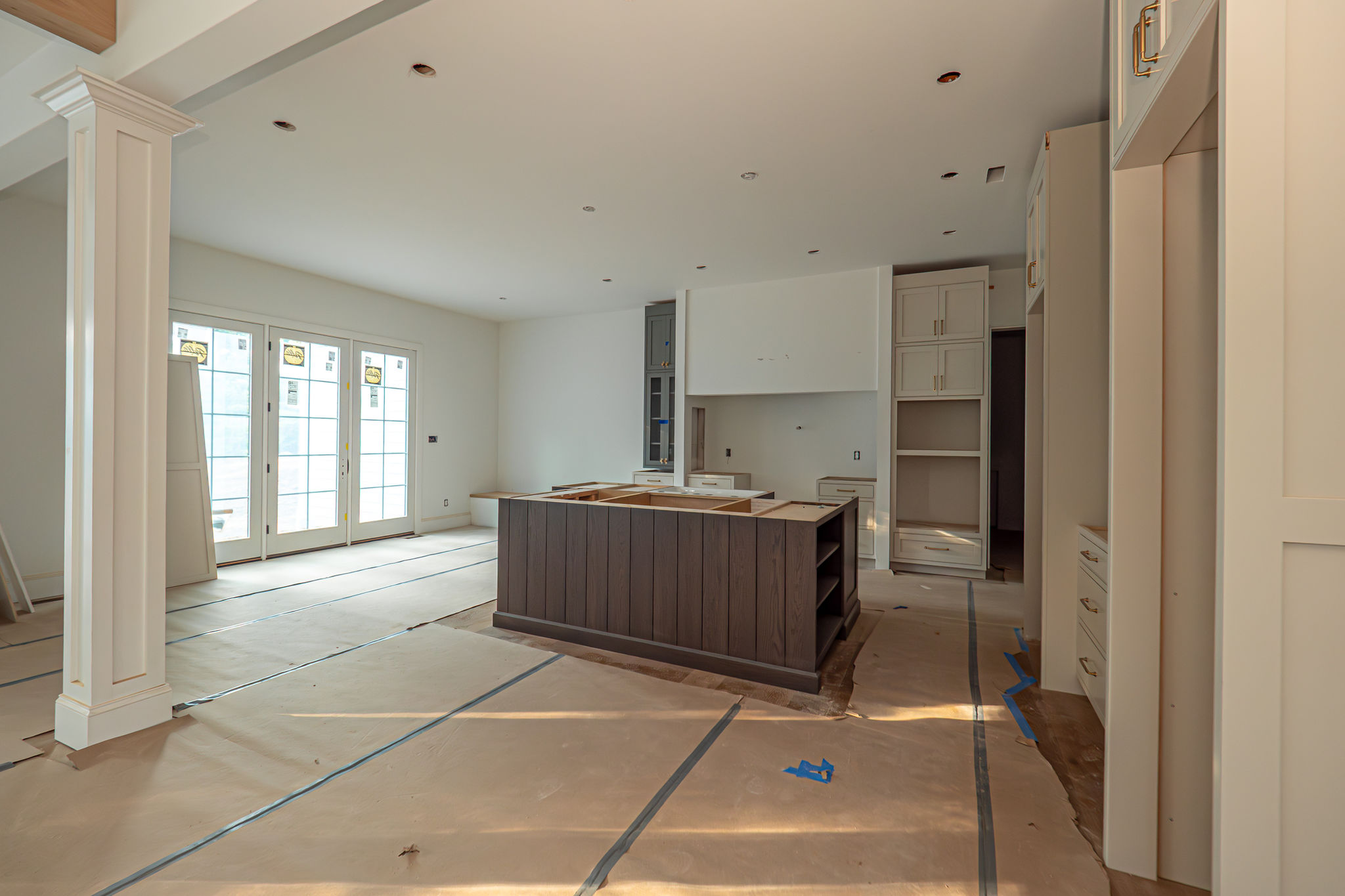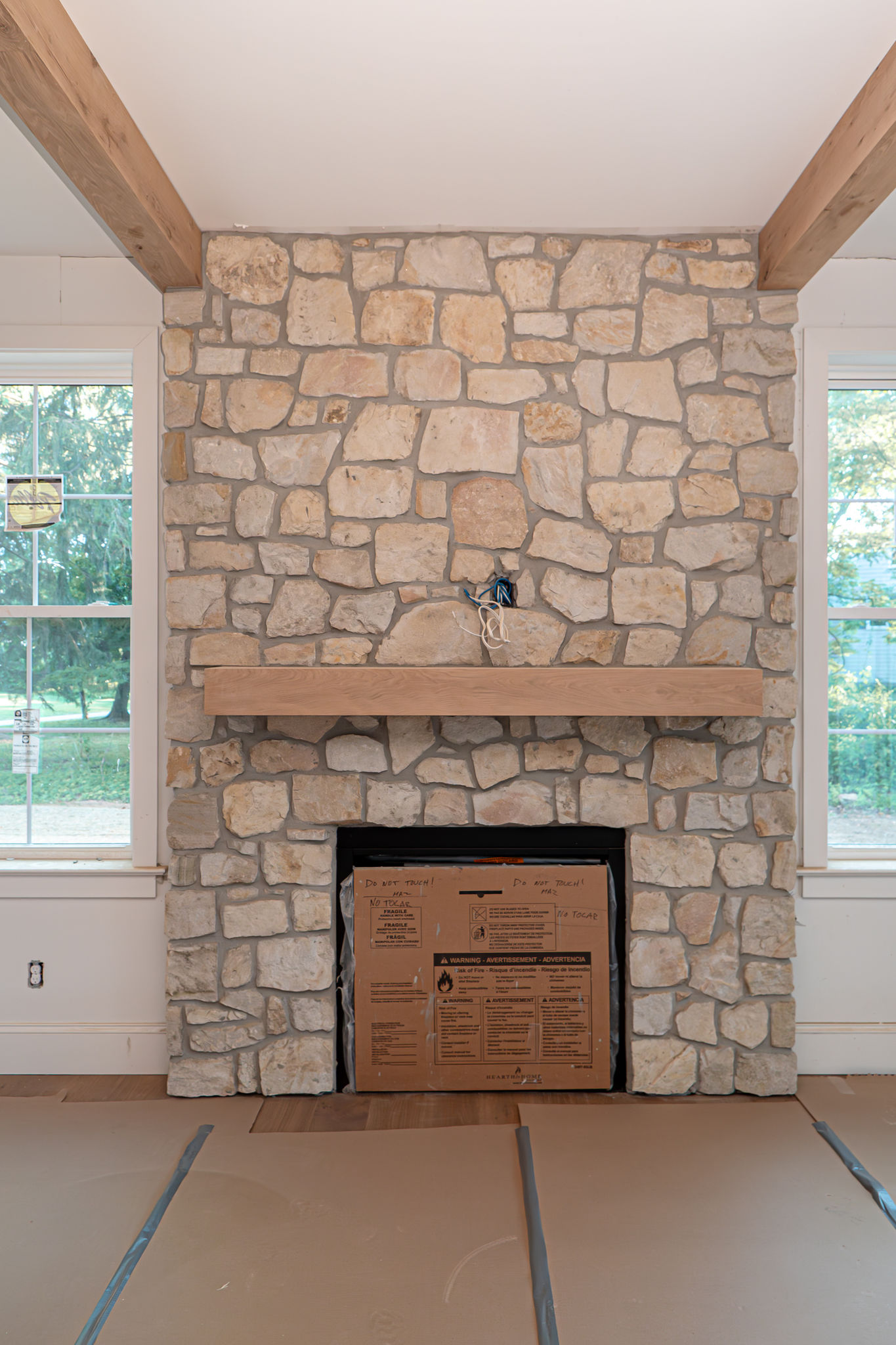 - Custom wood beams in family room
