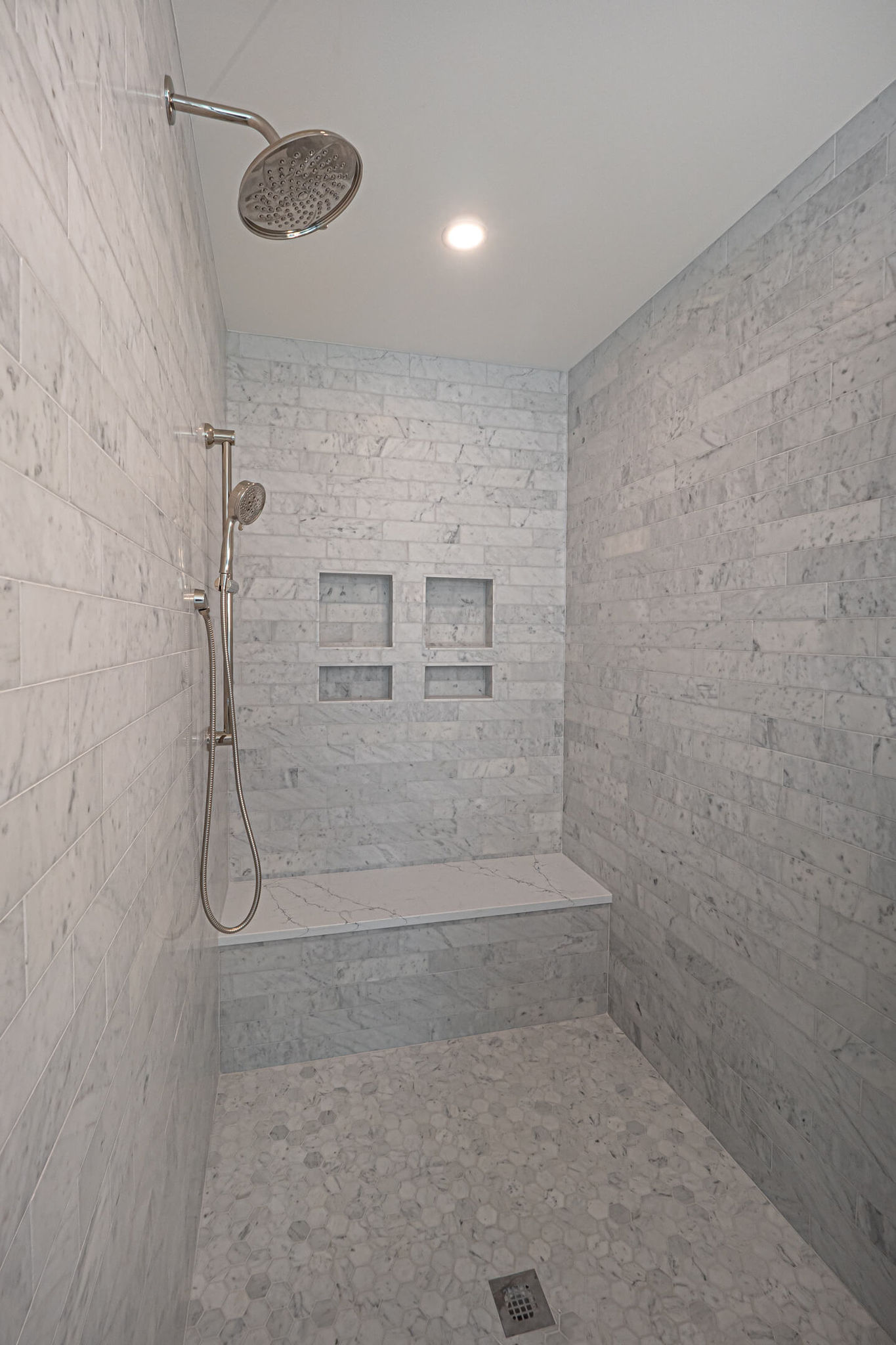 - Spa-Worthy Master Bath: Large shower with dual shower heads, frameless shower door, and bench, separate freestanding soaking tub, and his and her vanities